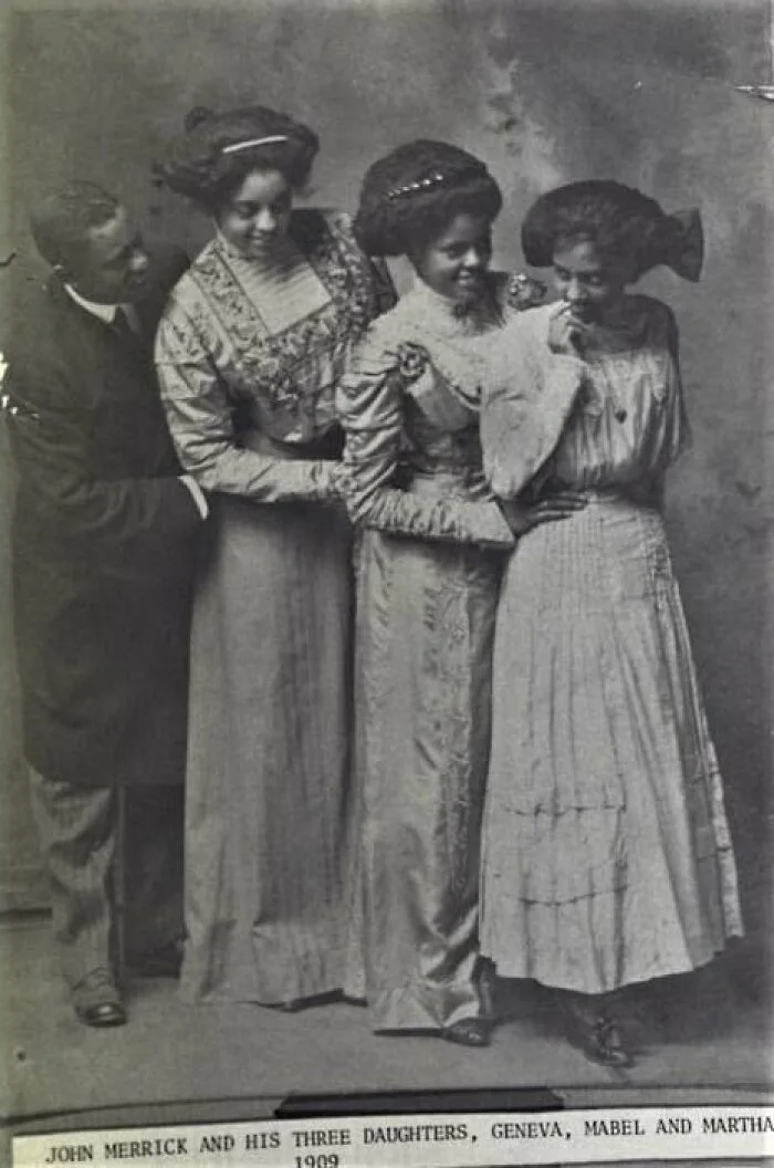 25. Джон Меррик и его три дочери, Женева, Марел и Марта. 1909 год