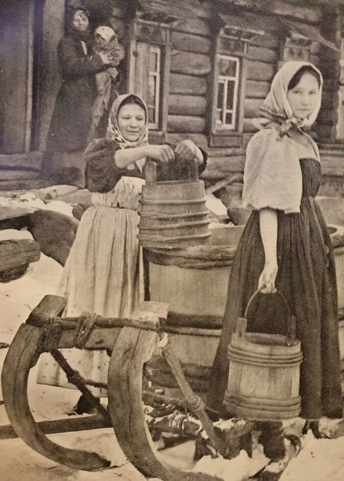 30. Крестьянки несут воду в избу, Российская империя, 1910-е