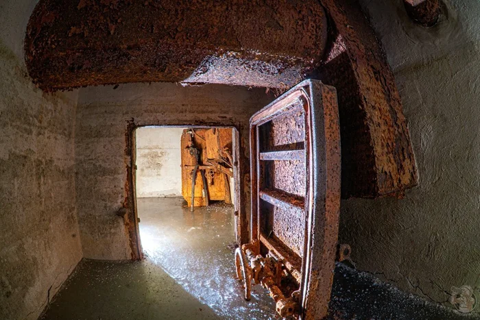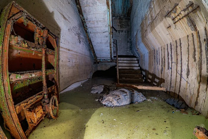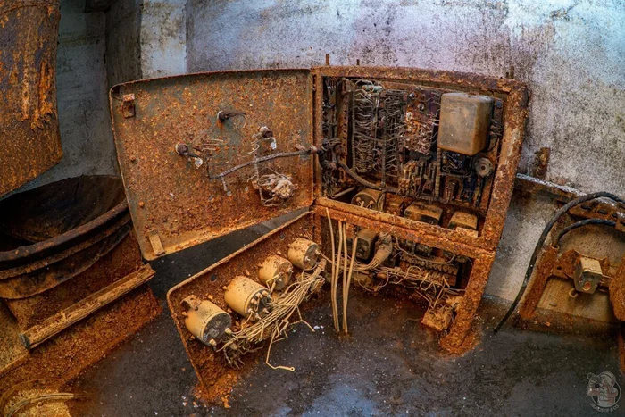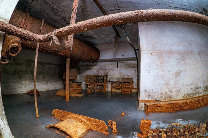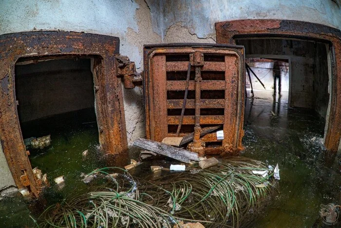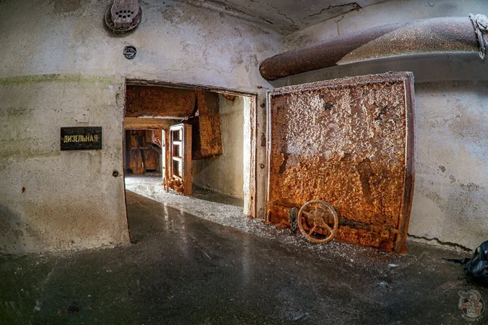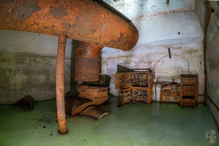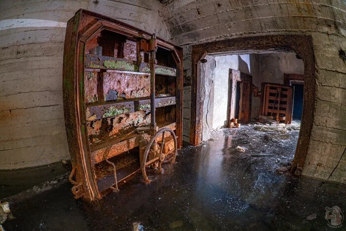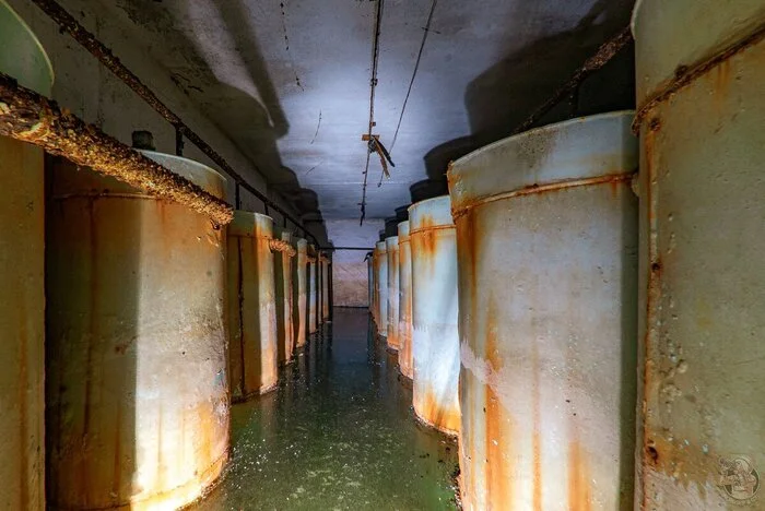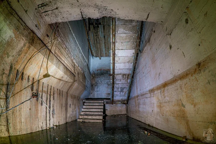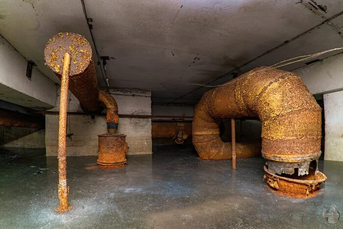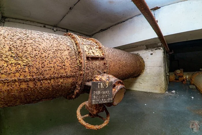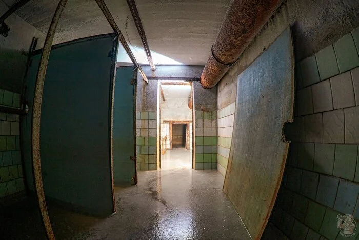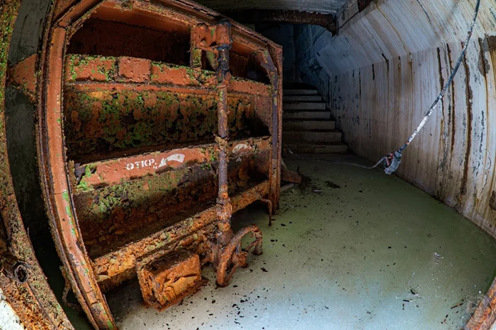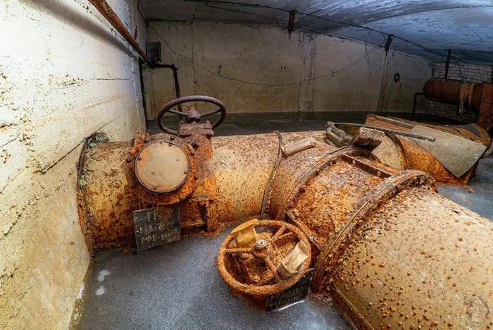 И вот результат. Внушительных размеров защитное сооружение нестандартного проекта в отличном (для заброшки) состоянии. Зрелище, конечно, нам открылось впечатляющее. Ощущаешь себя так, словно ты внутри поднятой со дна морского корабле. Или подводной лодке.