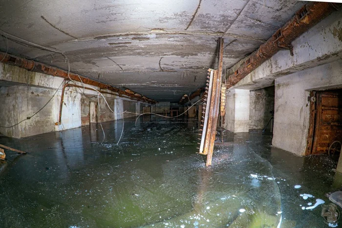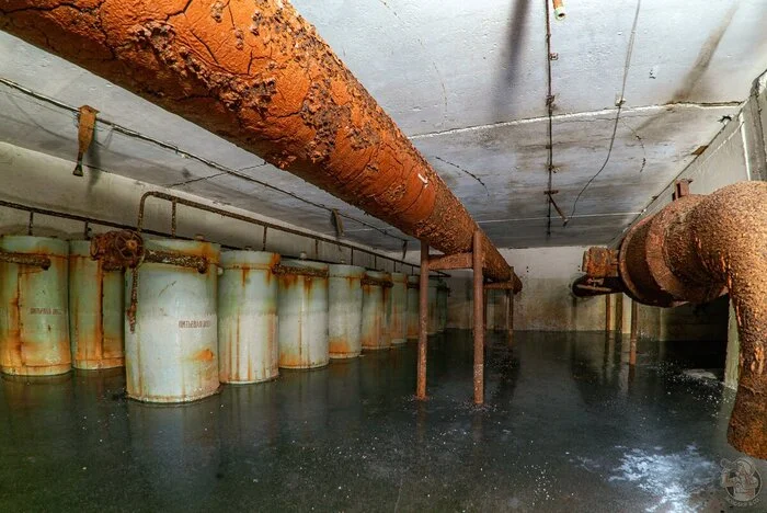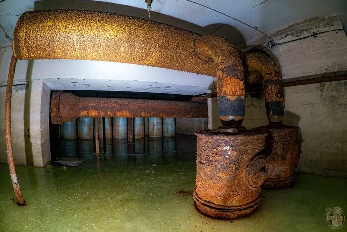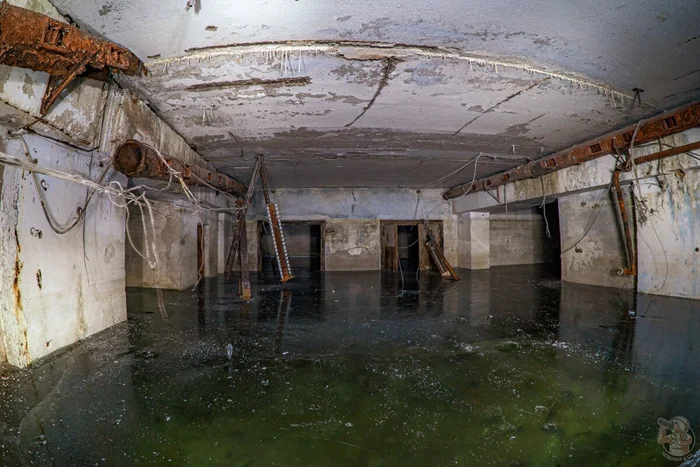 Приблизительно раз в год, а иные годы и по несколько раз, мы бегло проверяли территорию на предмет позитивных (для нас) изменений. И вот спустя два года после первичного обнаружения объекта территория становится доступной для индустриальных туристов, но вот незадача, ЗСГО было затоплено почти под потолок. Обратите внимание на стены, следы, красноречиво говорят об уровне затопления.
