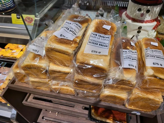 В этом супермаркете продаётся хлеб, нарезанный горизонтально. В некоторых странах (например, в Канаде) такое хлебное изделие используется для приготовления блюда под названием сэндвич-торт. В его начинку входят яйца, ветчина, курица и сливочный сыр.