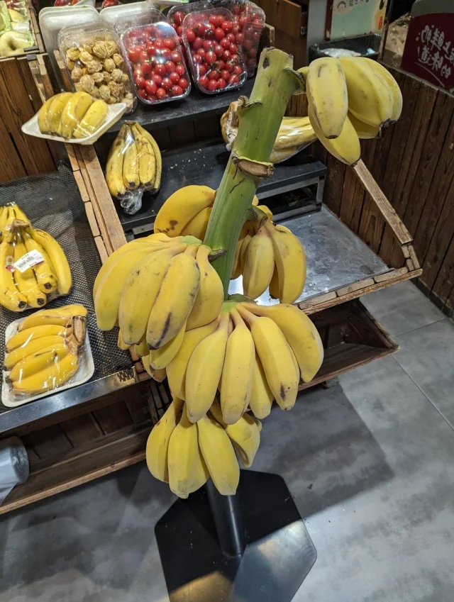 Эти бананы в продуктовом магазине продаются на стебле, на котором они выросли