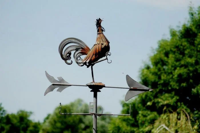 Считается, что прибор, название которого в переводе с голландского (vleugel) значит «крыло», был придуман в Афинах более 2 тыс. лет тому назад. Он изображал древнегреческого бога Тритона – сына сын Посейдона и Амфитриты, вестника глубин.У разных народов флюгеры изображали разные символы – богов, мифических животных, сказочных существ. Постепенно они заняли своё место и в геральдике.На Руси флюгеры появились в XIII веке и изначально имели строго вид флага. Но постепенно перечень форм расширился. И в наши дни они стали настоящими произведениями искусства и поражают воображение множеством форм, начиная с классических и заканчивая фантазийными.