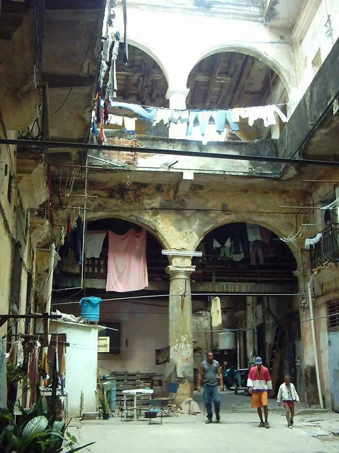 24. Разрушающийся колониальный особняк в Гаване, в котором сейчас проживает несколько семей. Эти здания называются "Соларес"