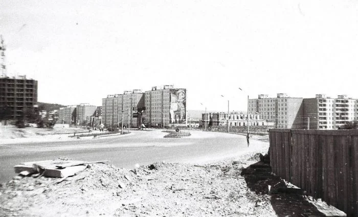 10. Тында, Амурская область. Начало Красной Пресни, слева - стройка 16-этажки, 1984 год.