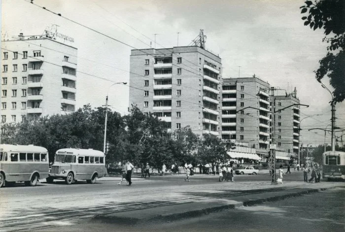 16. Днепропетровск, УССР. Угол проспекта Пушкина и проспекта Кирова, 1964 год.