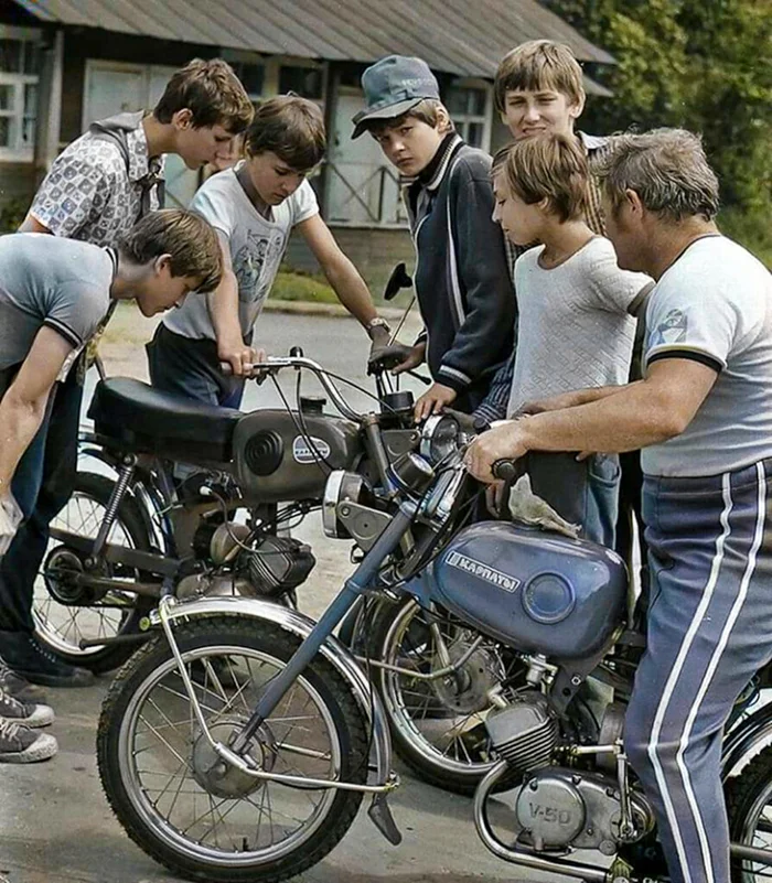 Мотосекция в пионерлагере "Юность" московского завода "Эра", 1985 год.