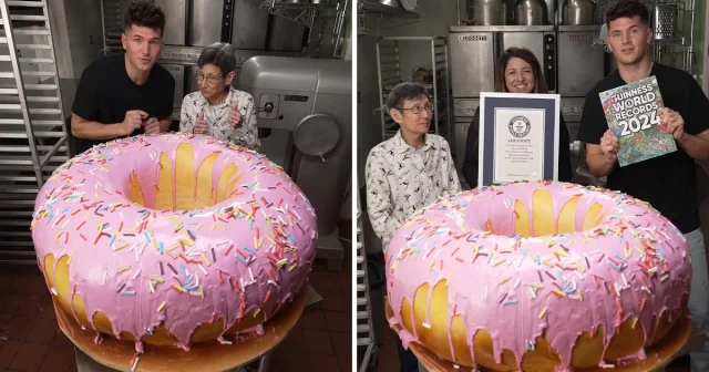 Кулинары из США и Японии испекли самый большой в мире пончик со сладкой начинкой. Вес сладости составил 100 килограммов. На его изготовление ушло более 8 часов.