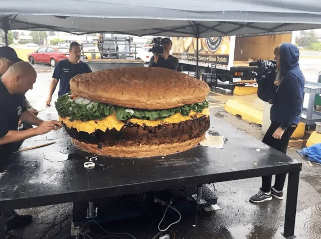 Бургер, который весил 804 килограмма, был приготовлен одним из гриль-баров в штате Мичиган, США. Кстати, при желании гости заведения по-прежнему могут его заказать и попробовать. Однако своего заказа придётся ждать в течение трёх дней.