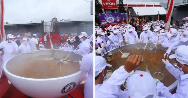Огромный суп с лапшой весом 1300 килограммов накормил почти 2000 человек во Вьетнаме в 2018 году.