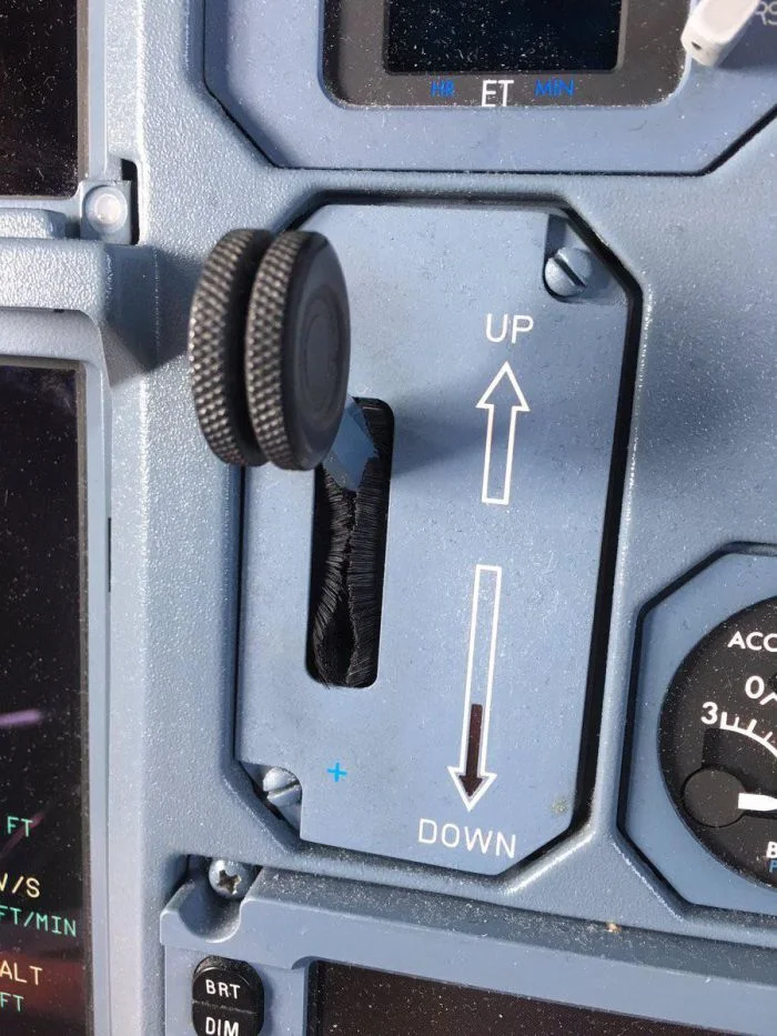 6. Этот рычаг в самолете имеет форму колеса, чтобы избежать случайного нажатия