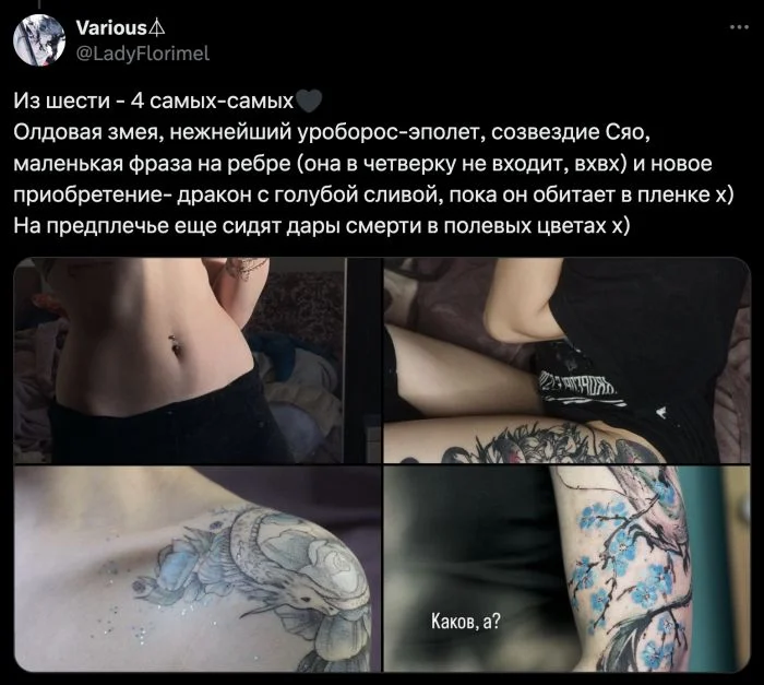 А вы можете поделиться чем-то подобным? Есть любимые татуировки?