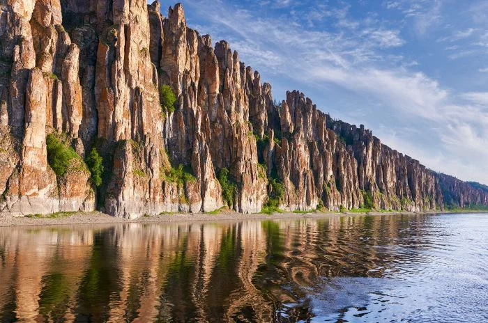 Эти огромные скалы на берегу реки Лены находятся в Якутии, самом большом и холодном регионе России.