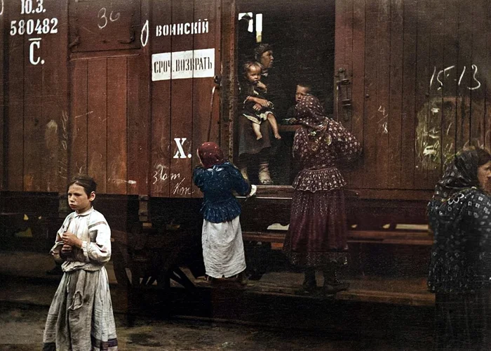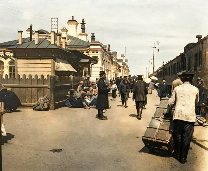 Крестьяне-переселенцы на станции Омск, 1908 год.