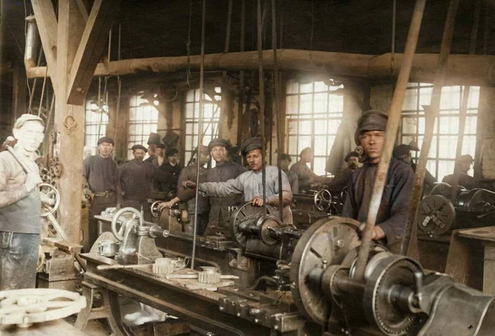 Рабочие у станков на Заводе С. Х. Рандрупа, 1910 год.