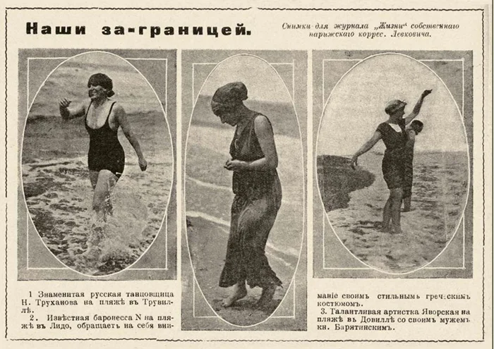 На женскую купальную моду повлияла в том числе австралийская пловчиха Аннет Келлерман (1886 – 1975). Аннет родилась в семье музыкантов, далеких от спорта. В детстве у нее были серьезные проблемы с ногами, и она плохо ходила. Родители рассчитывали, что плавание будет полезно для ее здоровья. Келлерман не просто пошла на поправку, но стала одной из первых профессиональных пловчих. Она участвовала в соревнованиях, выступала со своим шоу в образе русалки, позже снималась в кино. Она одной из первых стала выступать в цельных купальниках, напоминающих мужские костюмы. В 1900-х на волне своего успеха она начала выпускать свою линию купальников, которая стала популярной. По меркам того времени они считались очень смелыми.