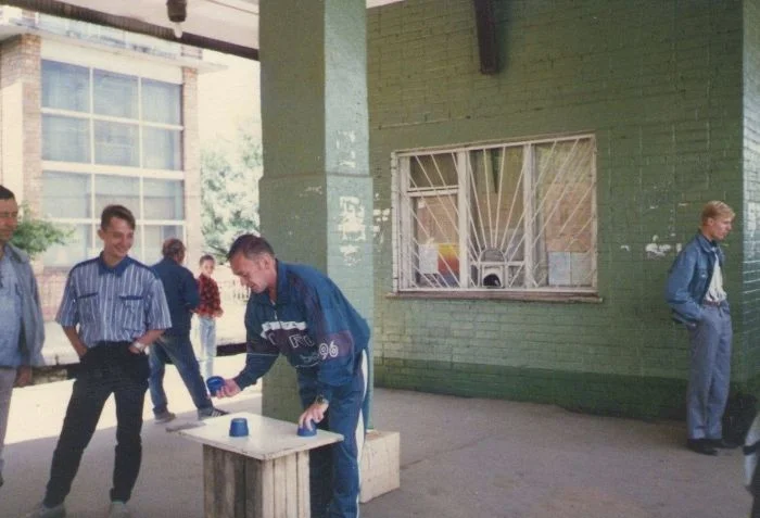 12. Ловкий напёрсточник развлекается и зарабатывает своим умением на платформе Тушино, Москва, 1996 год