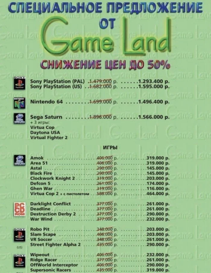 13. Цены на лицензионные игры и консоли в 1997-ом году