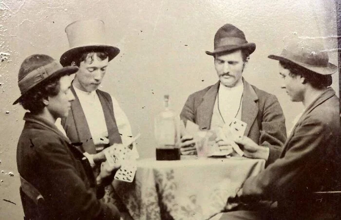 20. Одна из двух подтвержденных фотографий Билли Кида (тот, что в шляпе), игра в карты, 1877 год