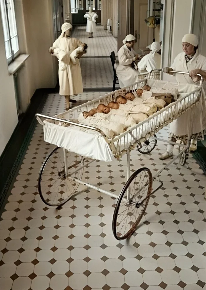Время кормления новорожденных в одном из родильных домов Москвы, 1955 год.