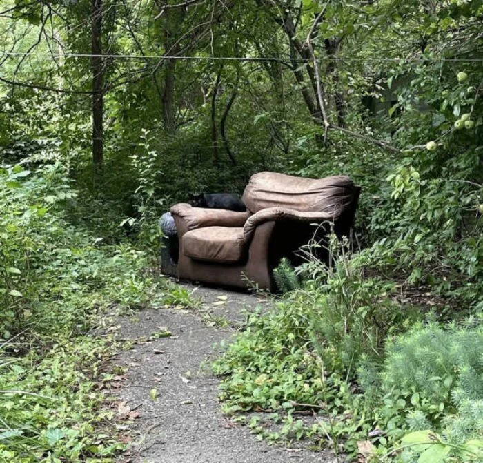 5. «Чёрный кот на кожаном кресле посреди леса»