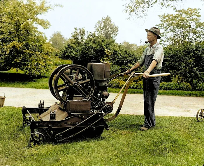 Одна из первых в мире газонокосилок с двигателем внутреннего сгорания. США. 1918 год.