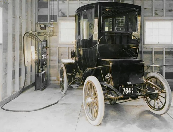 Зарядка электромобиля в 1911 году.