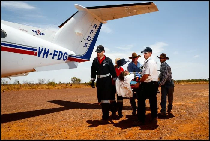 “Royal Flying Doctor Service” - крупнейшая аэромедицинская организация в мире. Она был открыта в 1928 году. Они помогают людям, живущим в сельской местности или в отдаленных районах Австралии, и первыми реагируют на несчастные случаи. Они перевозят больных, проводят медицинские консультации по телефону, радио или видеозвонкам; и доставляют врачей, необходимых для запланированных посещений.