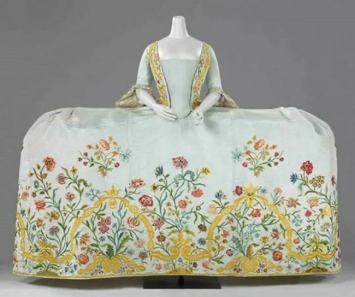 25. Шелковое свадебное платье Елены Слихер (ок. 1759 г.) Рейксмузеум, Амстердам. Юбка шириной более 2 метров