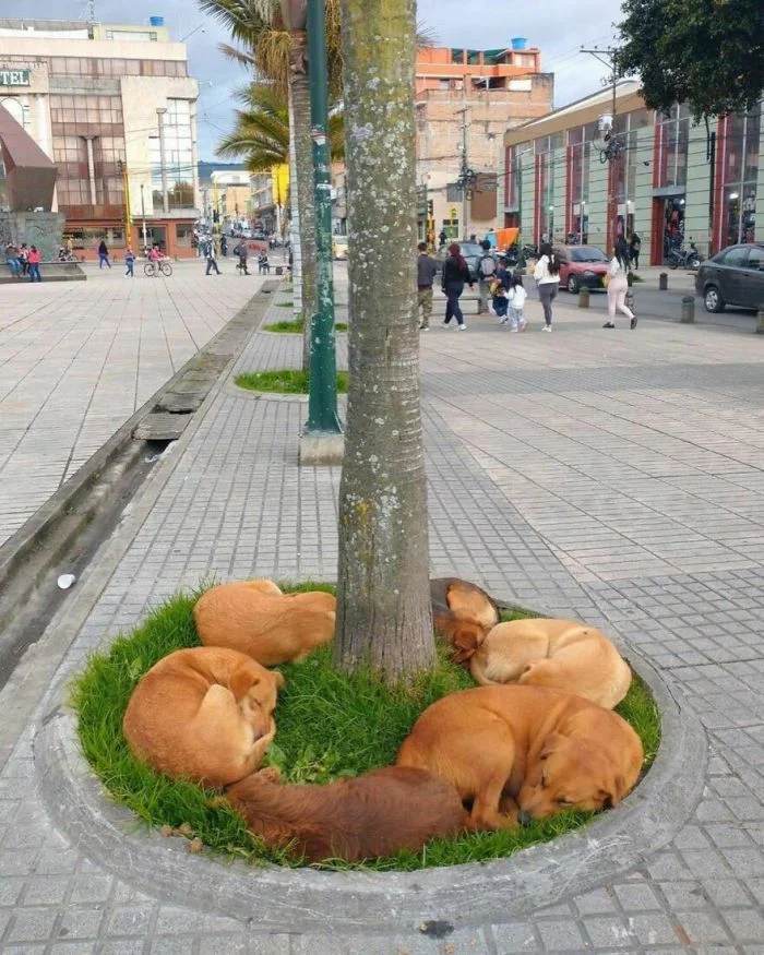 11. «Бездомные собаки в Бразилии отдыхают, расположившись вокруг дерева»