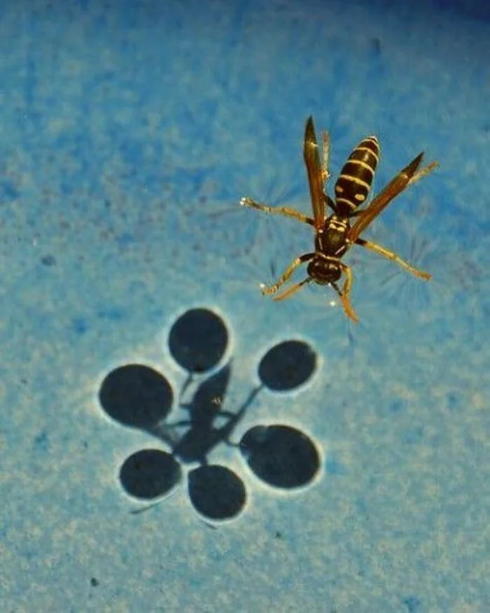 28. «Прекрасная демонстрация того, как оса использует поверхностное натяжение воды и насколько велика каждая область, которая держит каждую ногу»