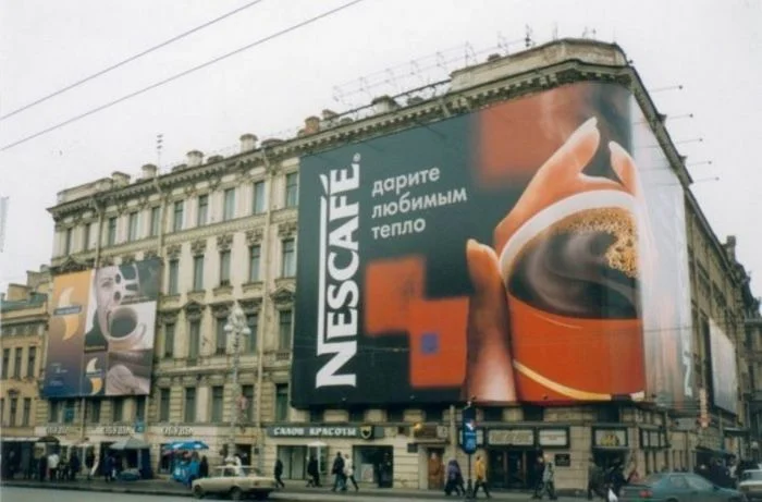 17. Масштабная реклама кофе «Nescafe». Санкт-Петербург, конец 1990-х.