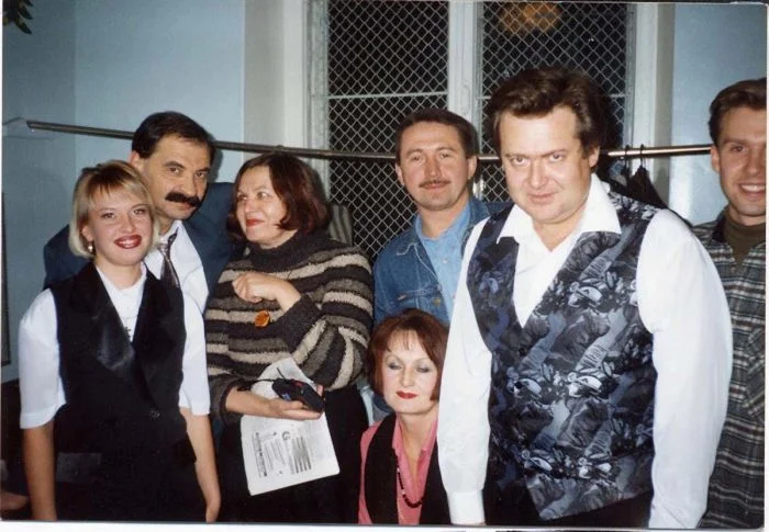 21. Фото на память. Артисты передачи «Городок» с поклонниками. Россия, 1990-е годы.