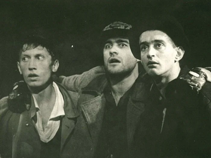 28. Михаил Трухин, Михаил Пореченков и Константин Хабенский на сцене Театра имени Ленсовета, 1997 год