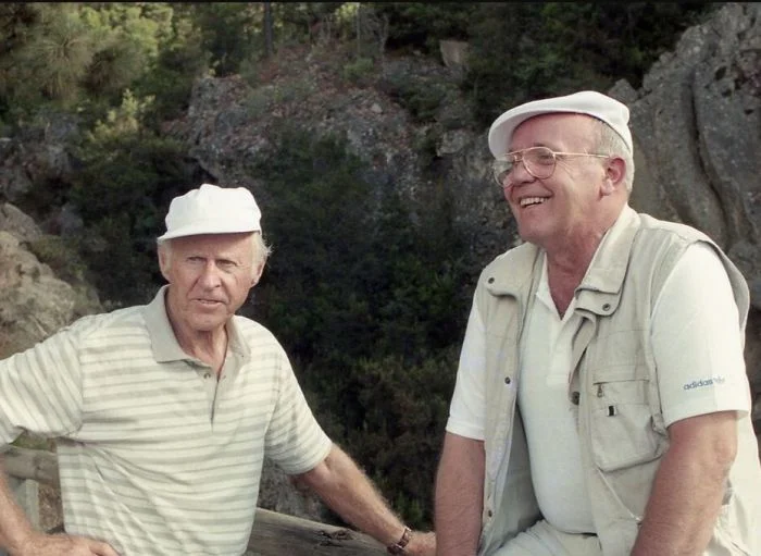 30. Юрий Сенкевич и Тур Хейердал по дороге на вулкан Тейде на острове Тенерифе,1996 год