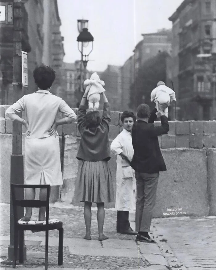 Жители Западного Берлина показывают своих детей бабушкам и дедушкам, живущим в восточном Берлине, 1960-е годы