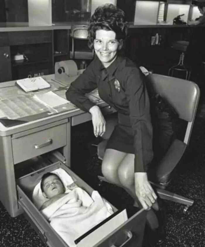 Женщина-полицейский ухаживает за брошенным ребёнком, найденным в номере отеля. Лос-Анджелес, 1971 г.