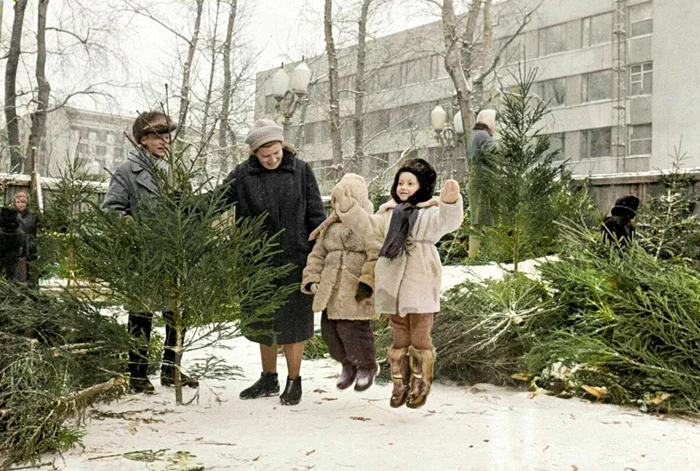 Новогодний ёлочный базар в Москве, 20 декабря 1964 года.