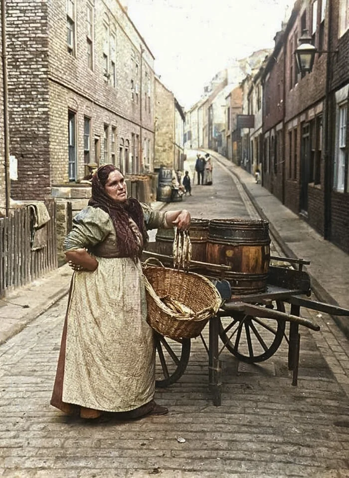 Продажа рыбы свежего посола из бочки. Лондон, 1910 год.