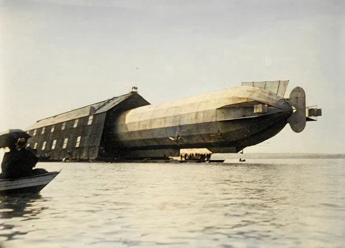Немецкий цеппелин LZ-5 входит в ангар. Германия, 1909 год.