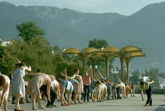 4. Остаёмся в Ялте и посмотрим, как отдыхающие утром делают зарядку на набережной.
