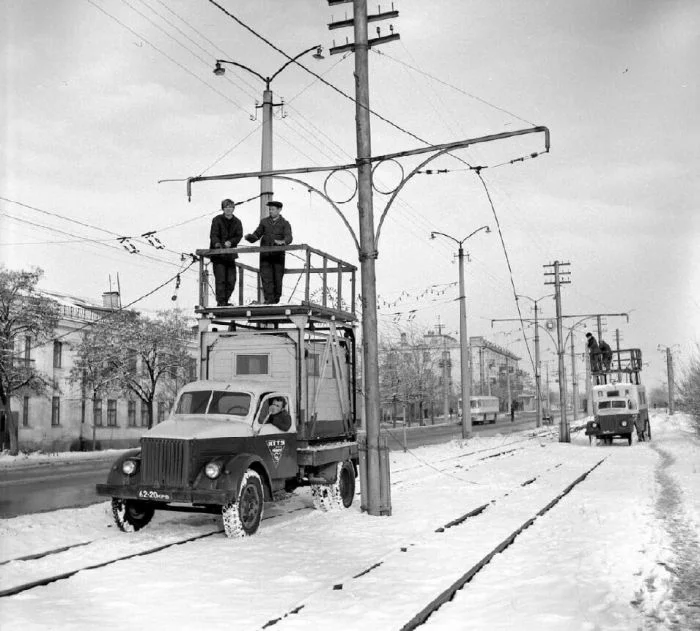 14. На фото - демонтаж контактной сети на проспекте Победы в Симферополе
