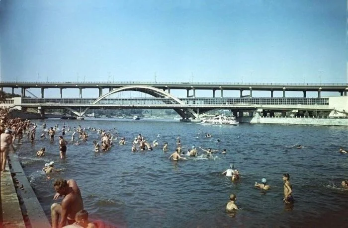 3. Купание у Андреевской набережной на фоне Лужнецкого метромоста. 60 лет назад никто не парился насчёт купания в Москве-реке.