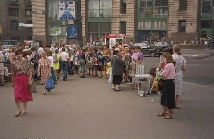 13. Очередь в фирменный магазин Lancôme в Ленинграде, 1991 год