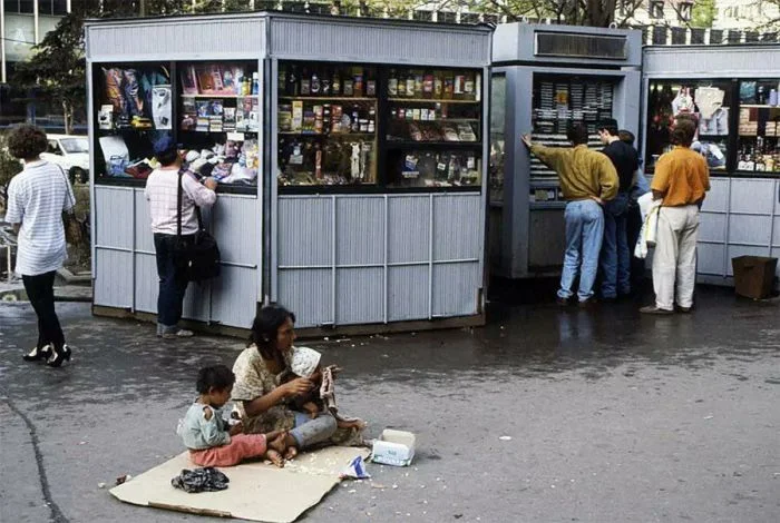 27. Цыгане и киоски на проспекте Калинина, Москва, 1992 год
