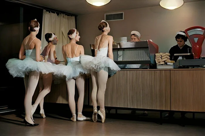 Артистки балета Большого театра СССР в буфете Кремлевского Дворца съездов, 1963 год.