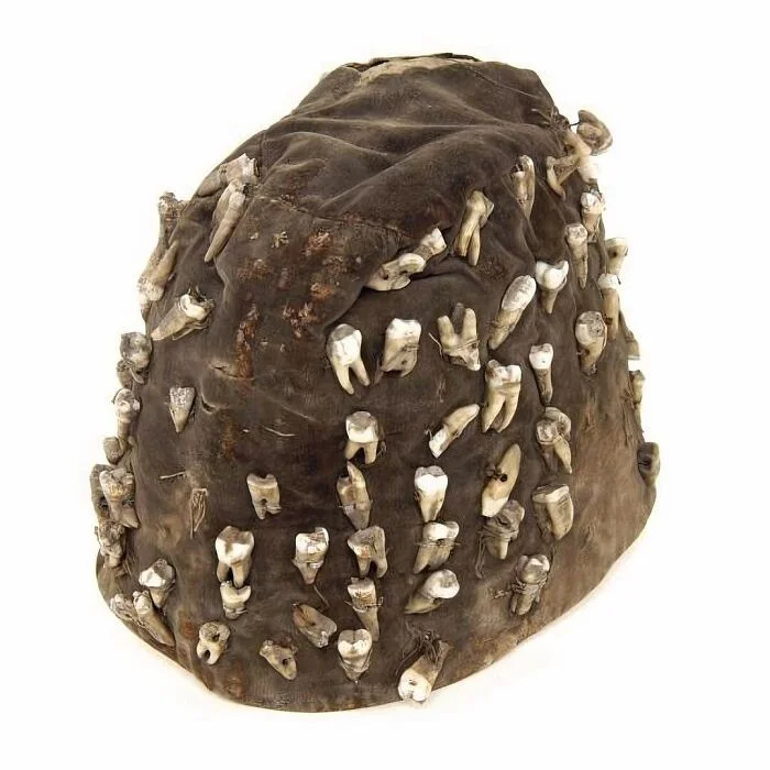 20. Коричневая бархатная шляпа, принадлежавшая уличному стоматологу в Лондоне в 1820-50-х годах. Она украшена 88 разрушенными зубами его бывших пациентов