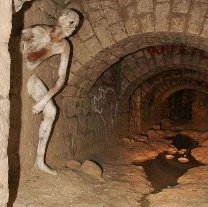 22. Скульптура «Проходящий через стены» в парижских катакомбах