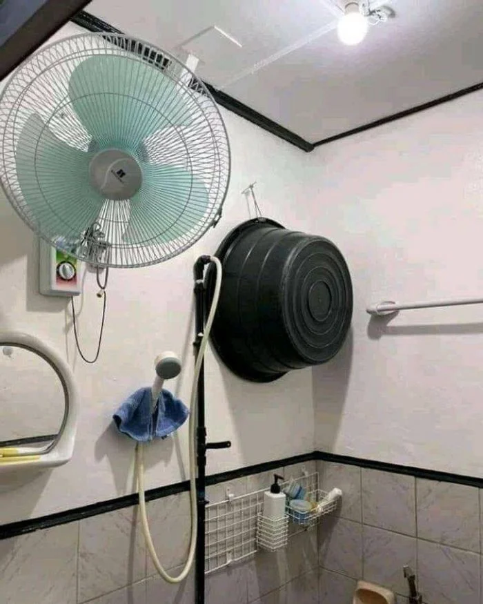 «Я только что въехала в новую квартиру и, войдя в ванную, нашла вот это! Буду ли я принимать ванну с включенным или выключенным вентилятором?»