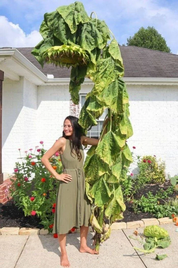 "Вот какой гигантский подсолнух у меня вырос!"